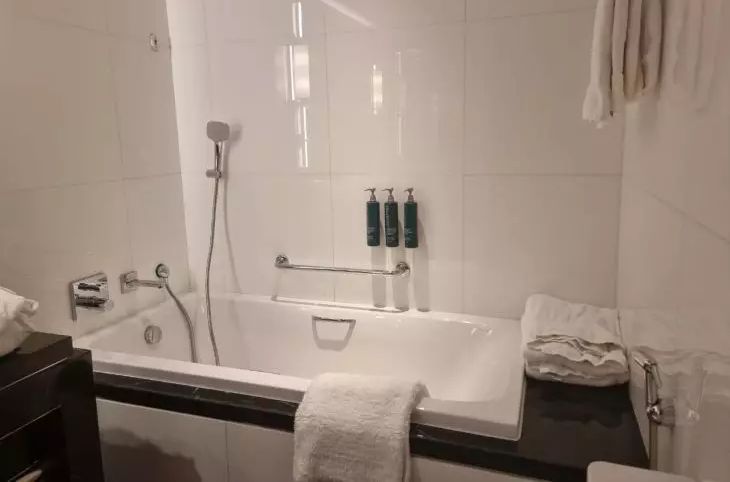 Бежевый, серый, белый могут сделать ванную комнату визуально больше и более открытой.