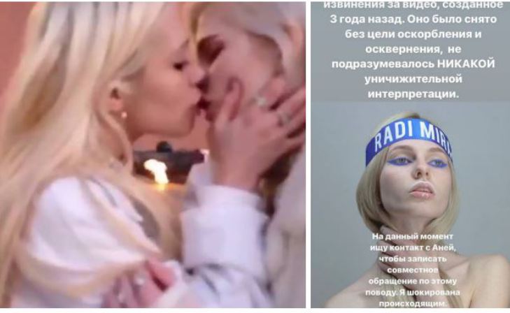 На опубликованном ролике она целуется с рэпершей Хофманнитой на фоне Могилы Неизвестного Солдата в Москве.