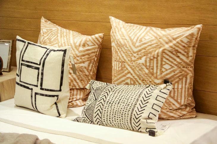 То же самое — с декоративными подушками. Строгие ряды одинаковых квадратов выглядят как солдаты на параде.