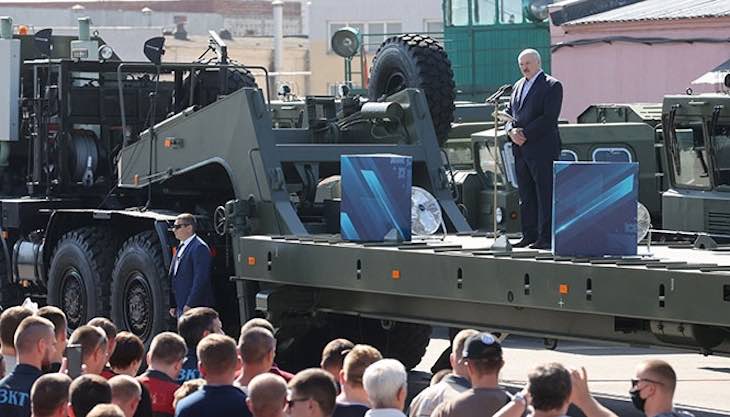 Лукашенко прибыл на МЗКТ в сопровождении сына Николая. Территория завода охранялась службой безопасности. Журналистов, которые не прошли аккредитацию, не пропускали.