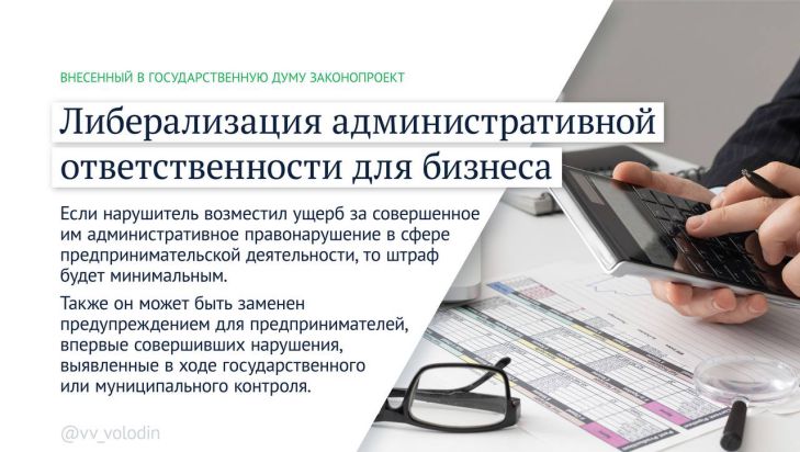 В случае принятия предлагаемых мер также будет снижен уровень ответственность для тех, кто впервые совершил административное правонарушение в сфере предпринимательства.