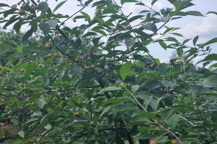 Бывает и другая причина: вишня жирует на азотных удобрениях, наращивая огромную зеленую массу в ущерб плодоношению.